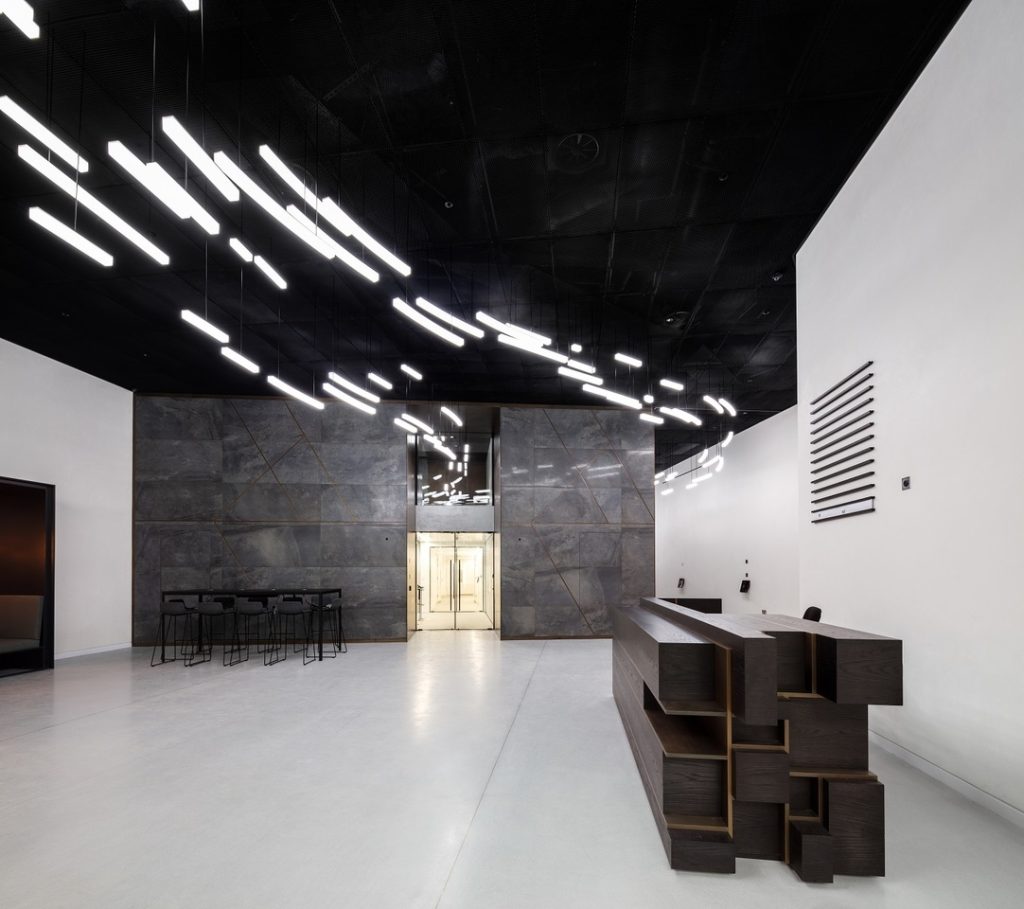 Proving that you never have to compromise on design to achieve excellent reception acoustics, our SonaSpray is the acoustic engine behind this seriously stylish suspended feature ceiling, making an excellent first impression on visitors and clients.