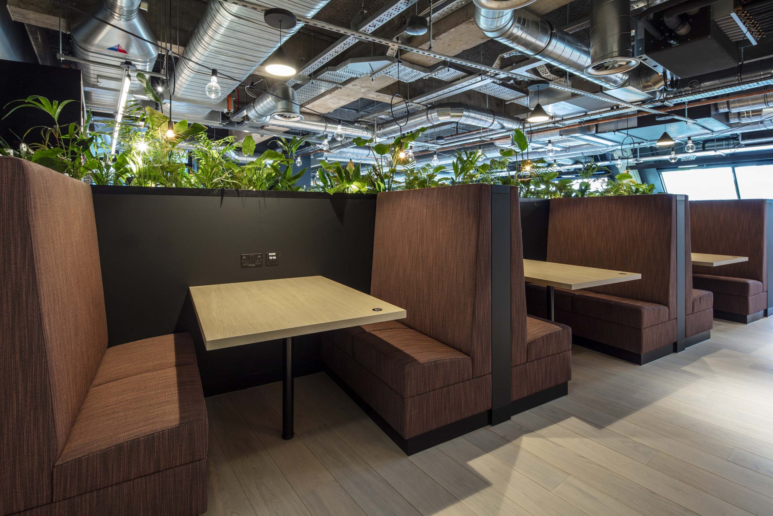 You can see the SonaSpray acoustic finish between the concrete beams amongst all the services, quietly doing its job and blending into the beautiful surroundings. SonaSpray enables employees to communicate easily without needing to shout and work harmoniously without distractions.